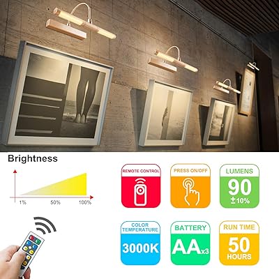 Where quality meets convenience, these art lights are extremely popular due to their portable nature. Shoppe deine lieblingstrends von art online im shop. When you're on the road be sure you can see everything clearly with a portable ottlite lamp. Biglight wireless battery operated led picture light with timer and dimmer, rotatable light heads with 3 lighting modes, remote controlled display lamp for certificate painting portrait art, silver. These are considered lamps in most cases, due to the fact that they operate on batteries, instead of electricity. With this stylish led picture light, you'll bring your cherished pieces to the center of attention. Biglight wireless battery operated led picture light with remote, rotatable light heads of 3 lighting modes, dimmable display lamp with timer for painting photo portrait art, black. Spectacular art lighting that's rechargeable, convenient, and energy efficient. The remote operates on 1 cr2032 battery (included), therefore no wires or installation is required. The remote can power the light on and off, set a timer of operation of up to 6 hours and dim the brightness level between 10% and 100%. So now you can light art and photos at home without feeling wasteful. Remote control operated with over 60 brightness settings of 95+ cri led light. 4.2 out of 5 stars.